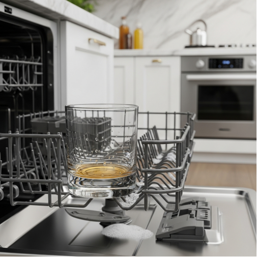 Using too much detergent is a primary cause of "etching"—a permanent cloudiness caused by chemical corrosion. Always use a rinse aid. It helps water sheet off the glasses, dramatically reducing water spots and improving drying.